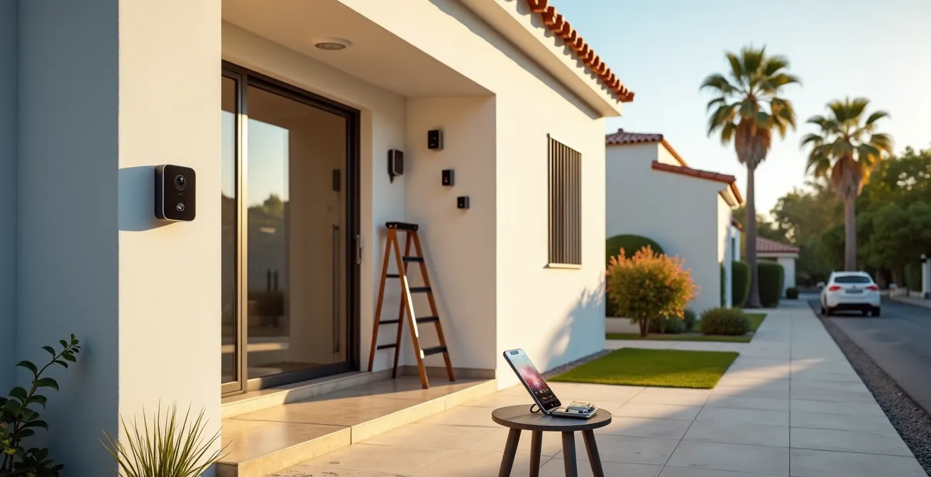 La idea de volver a una segunda residencia y encontrarla ocupada ilegalmente es una de las mayores preocupaciones para muchos propietarios en España. El primer impulso, lógico y moderno, es entrar en Amazon y comprar una cámara de vigilancia WiFi con la promesa de «instálalo tú mismo en 5 minutos». Sin embargo, esta simplicidad aparente esconde una compleja realidad legal y técnica que a menudo convierte una inversión de 100 euros en un falso sentido de seguridad o, en el peor de los casos, en una fuente de problemas legales con vecinos o multas de la Agencia Española de Protección de Datos (AEPD).